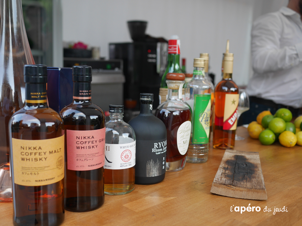 Nous avions tout d’abord la chance d’avoir avec nous ce soir là un maître es-mixologie, l’éminent Guillaume Bisiaux des Bienheureux. Après être passé par des palaces et l’excellent Jefrey’s, il s’est lancé dans la production de spiriteux en France. Il nous a régalé de ses excellents cocktails, notamment ce fameux Japanese Sling.